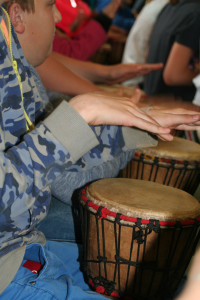 Begeistert nahmen die Schüler und Schülerinnen der Grundschule Am Schloß an der Trommelveranstaltung teil.